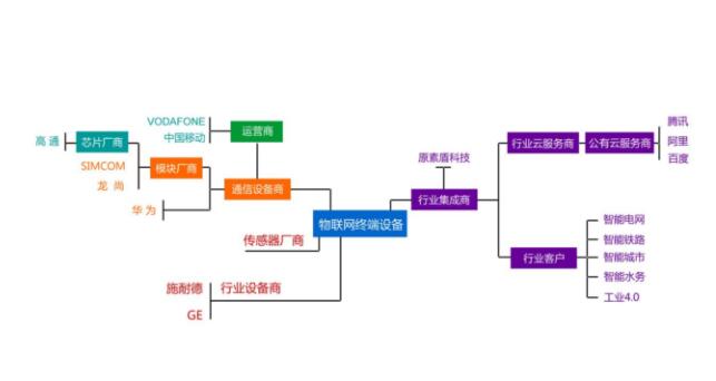 目前,人們習慣將物聯網分為“感知層”、“網絡層”、“應用層”三個層面。其中感知層包括各類物聯網終端設備,如二維碼、RFID、各類傳感器等;網絡層包括2G、3G、4G以及有線網絡等;應用層包括綠色農業、公共安全、工業監控、智能家庭、智能交通、智慧城市等應用領域。但現實中,物聯網產業鏈的劃分往往不是那么的清晰,很多企業橫跨多個領域,彼此互有重合的部分,例如深圳原素盾科技,既是模塊廠商,又是設備制造商,同時業務也涉及到很多行業的系統集成。在這里,我們僅從感知層面和應用層面展開討論。